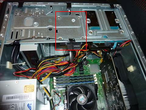 交換はビス2本で簡単に開けられるPCの横のカバーを外してそれらしきものを探しました(^ ^;