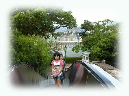グラバー園は動く歩道を5本乗り継ぎ坂の一番上まで運ばれた後