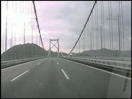 いきなり視界が開き始め片側3車線の直線に入ったところで関門橋が見え始めました。