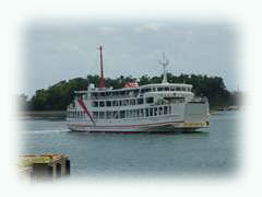 ターミナルで乗船券などを買って昼食の角煮まんじゅうなどを食べて出航まで時間をつぶします。