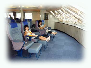 乗船したら特別席が期間限定で300円という事なので(オットマン付きのリクライニングシート)ゆったりできそうなのでそこに座りました。